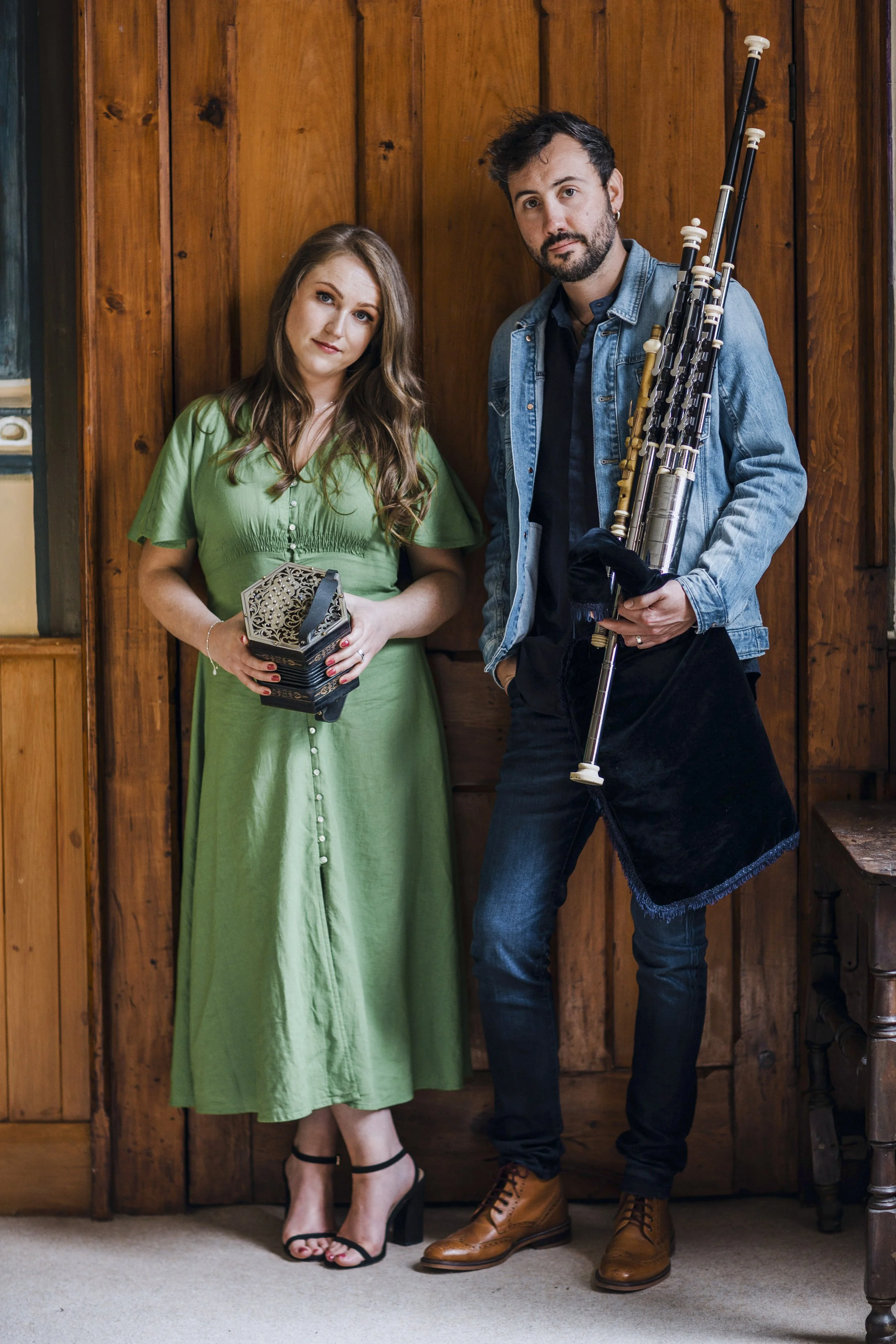 Both highly skilled multi-instrumentalists, Caroline and Tom bring an exceptional level of artistry to their performances. Caroline is a masterful concertina player, known for her intricate, expressive playing, while Tom’s bold and lively style on uilleann pipes, bouzouki, and guitar has earned him a reputation as one of the leading musicians in the folk scene. Their performances span a wide range of styles—from lively dance music to emotive airs and powerful songs with heartfelt lyrics. Their music reflects their personalities: fun, vibrant, and filled with heart and soul.